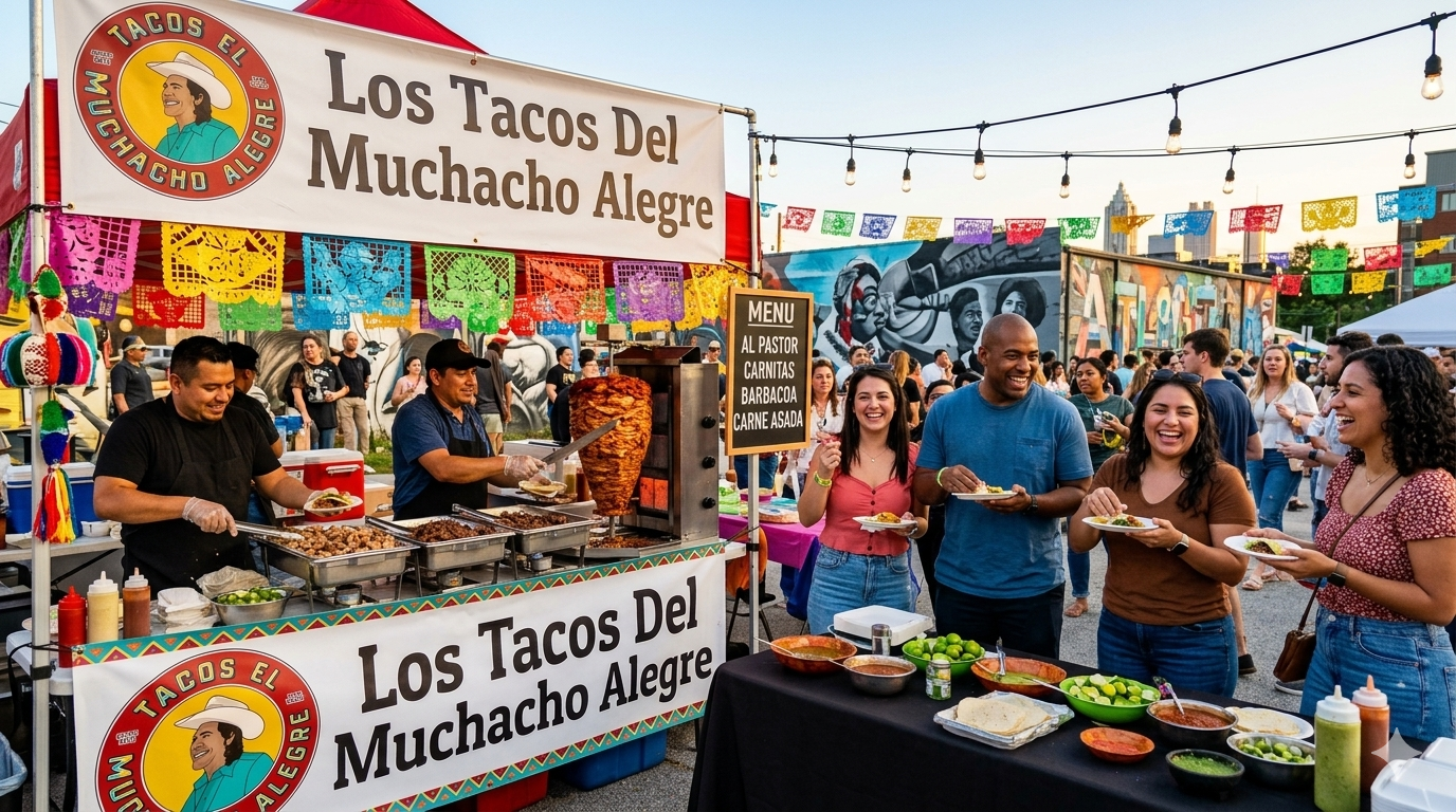 Hoy, Los Tacos del Muchacho Alegre no es solo un servicio de taquizas. Es un pedacito de México en Atlanta, donde cada taco cuenta una historia y cada evento se convierte en una fiesta llena de sabor.